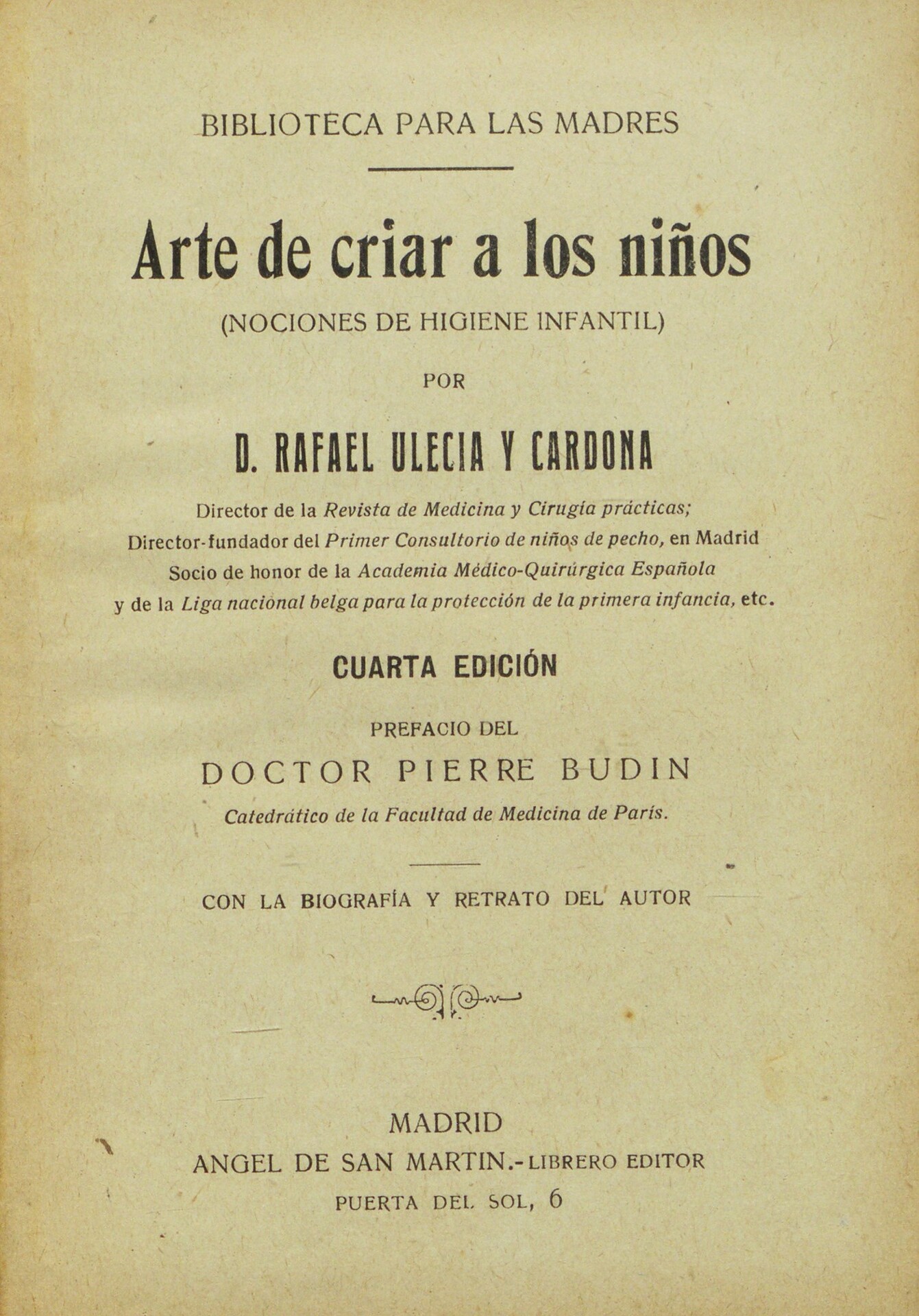 El autor, el doctor Rafael Ulecia fundó a fines del siglo XIX, en Madrid, la institución denominada la Gota de Leche, iniciativa precursora de la moderna puericultura.
